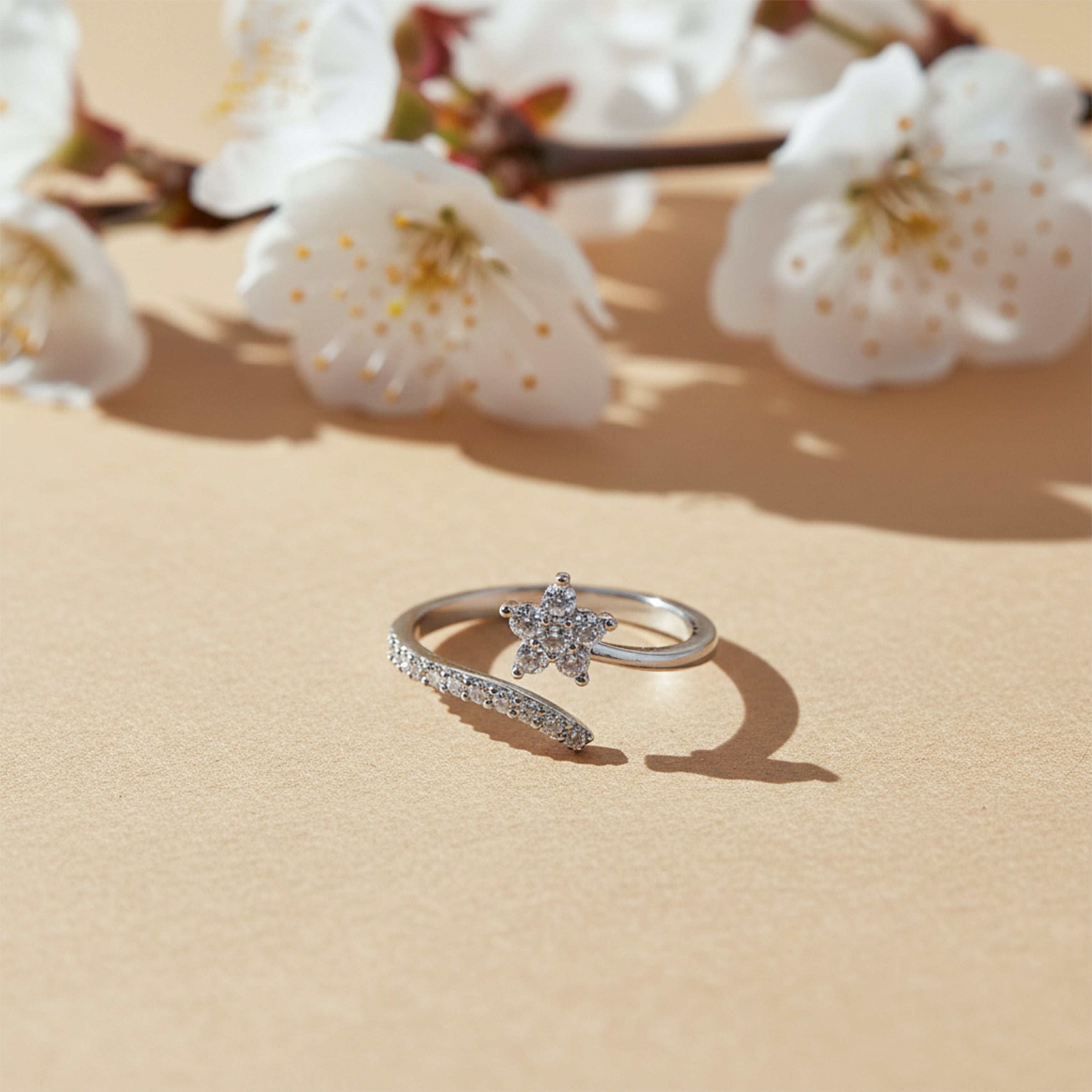 Crafted with high-quality alloy and finished with a premium silver-tone (rhodium-style) polish, this ring offers durability and long-lasting shine. The adjustable open design ensures that it fits most finger sizes comfortably without the need to worry about exact sizing.